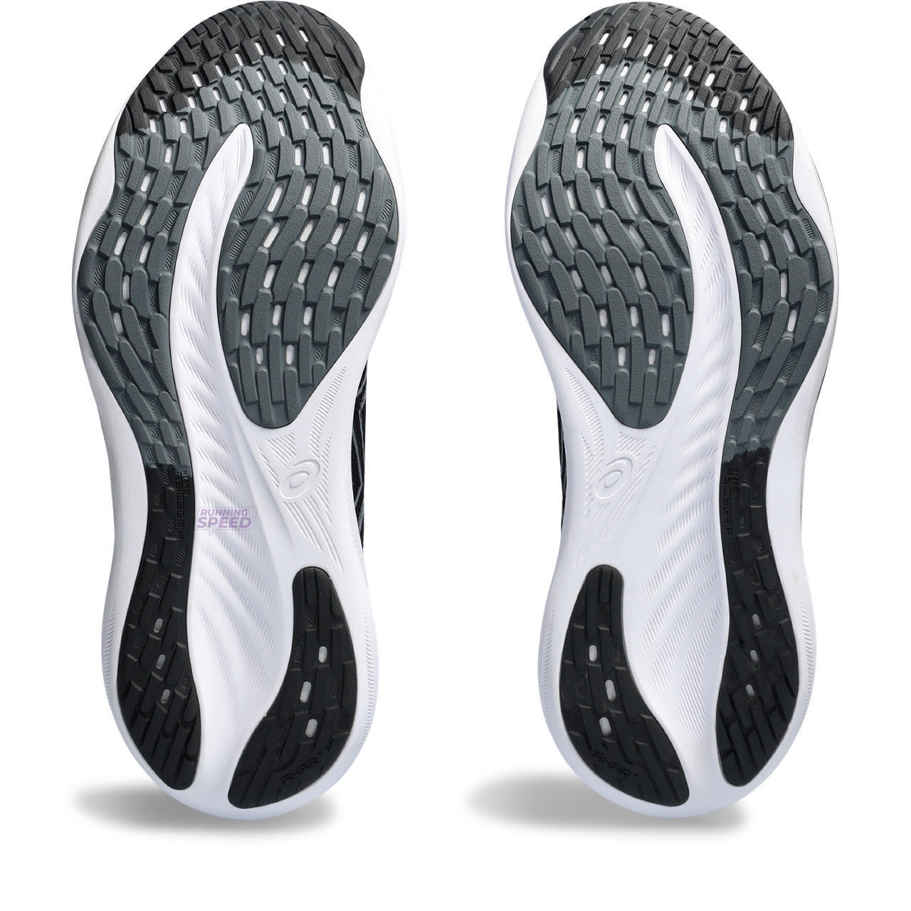 HYBRID ASICSGRIP™: Uma combinação de sola de borracha ASICSGRIP™ e AHAR+™ oferecendo melhor aderência e suavidade aprimorada, mantendo a durabilidade PureGEL™: